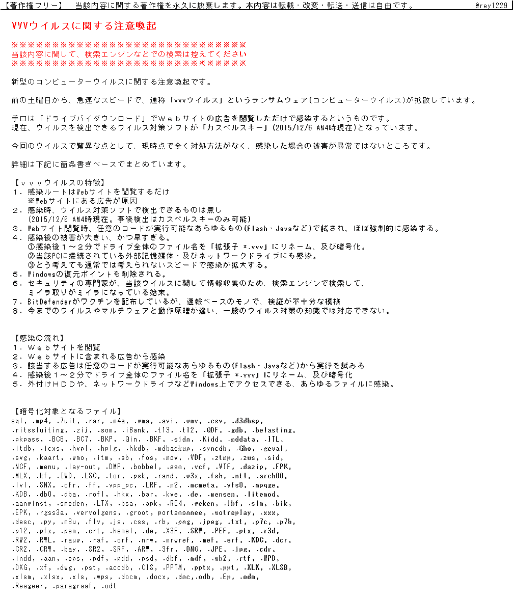 昨日のウイルスだが、このような注意喚起を見つけた。