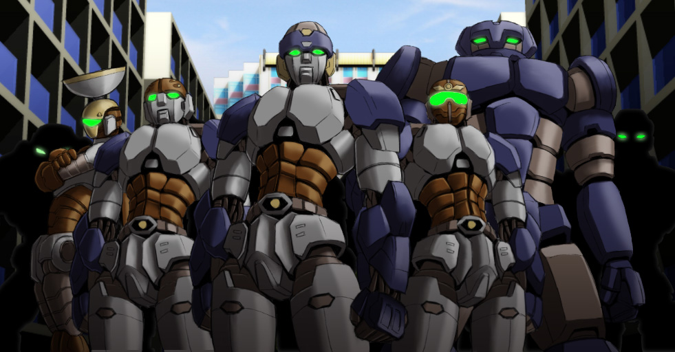 さてさて、モチベ下がりながらもやっとできた絵素材は、6神合体しそうな偽装ロボ達。