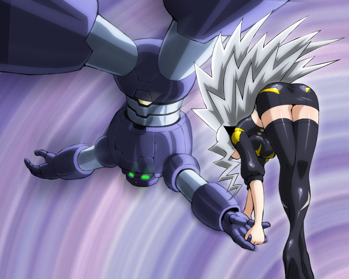 正面からの構図がどうにも決まらないので「そうじゃ漫画のプラレス3四郎に後ろ向き投げ構図があったぞ!」というのを思いだした。