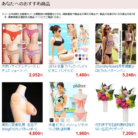 Yahooでちょっとエロ水着カタログ検索したら来たお勧めメール。
