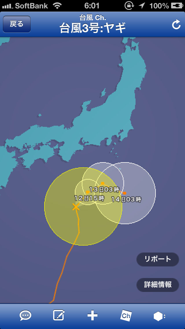 コンビニに行こうとしたけど店の前で座り込んでるDQNの群れを見て引き返す図のような台風の進路。