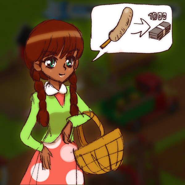 やがて小さい畑に作物が実り、トリもタマゴ生んで収穫物が増えてくると、NPCのお客さんが訪れるようになる。